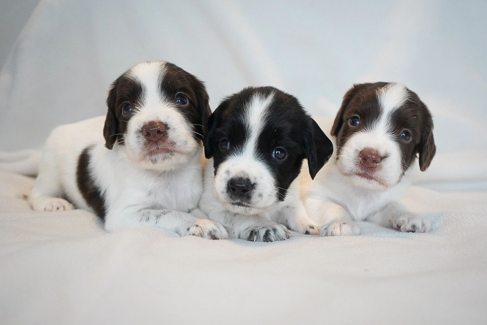 Dew claws removed and tails docked to field length (2/3 on, 1/3 off)